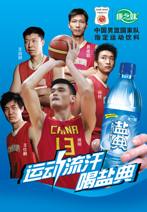 2009中国运动饮料——康之味盐典与中国篮球协会签订合作协议,康之味盐典成为中国男篮国家队唯一指定运动饮料;康之味盐典携手中国男篮国家队,为打造“中国运动饮料第一品牌”又迈出了坚实的一步,在品牌征途上昂首奋进(运动流汗喝盐典——康之味)。